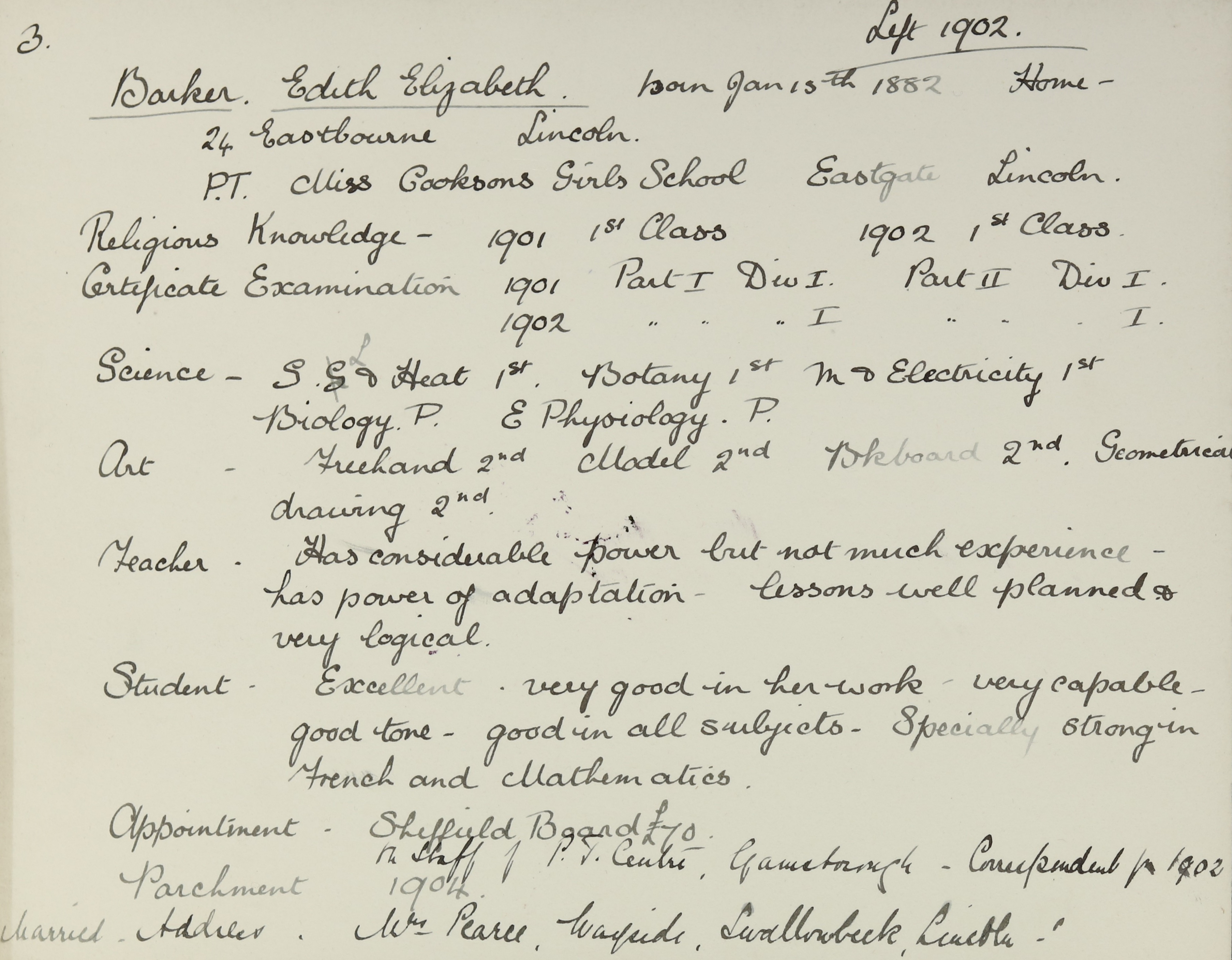 Appointed to Gainsborough Pupil Teacher Centre. Assistant.