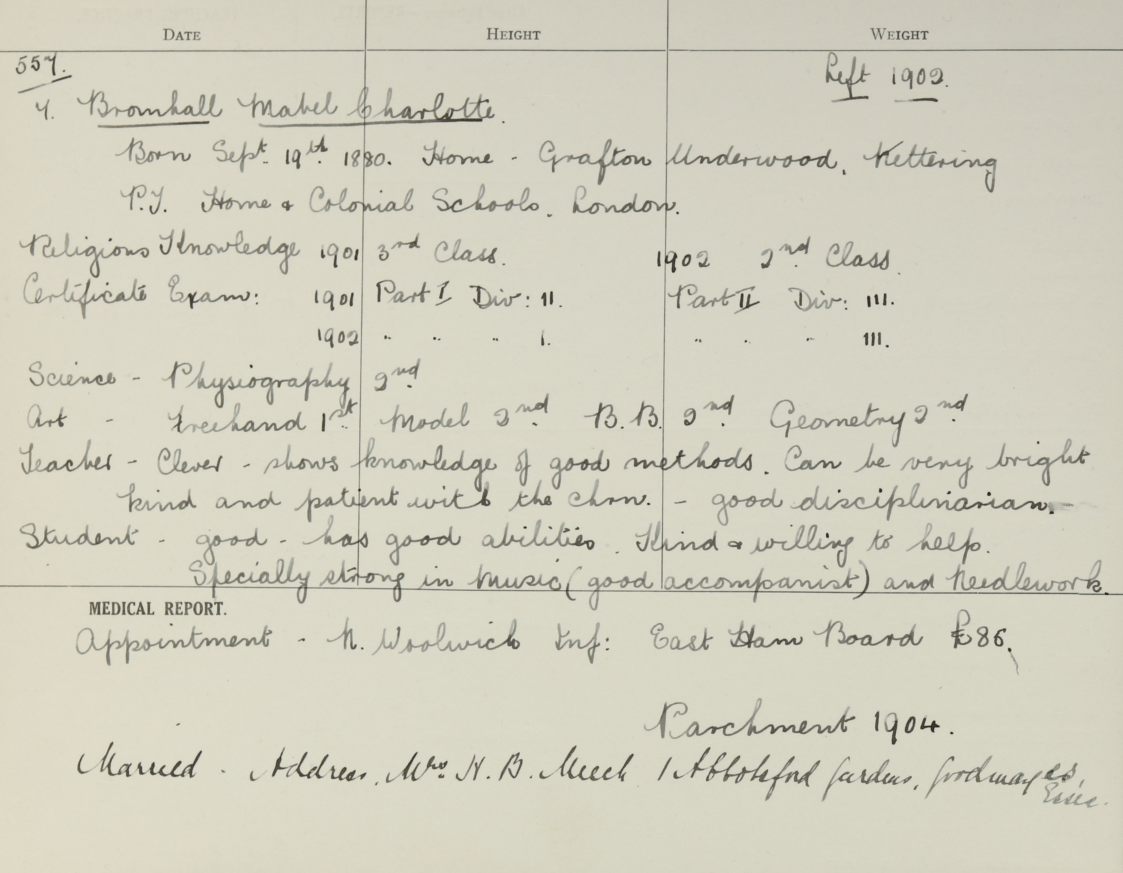 Appointed to North Woolwich Infants', East Ham Board. Assistant. £85.