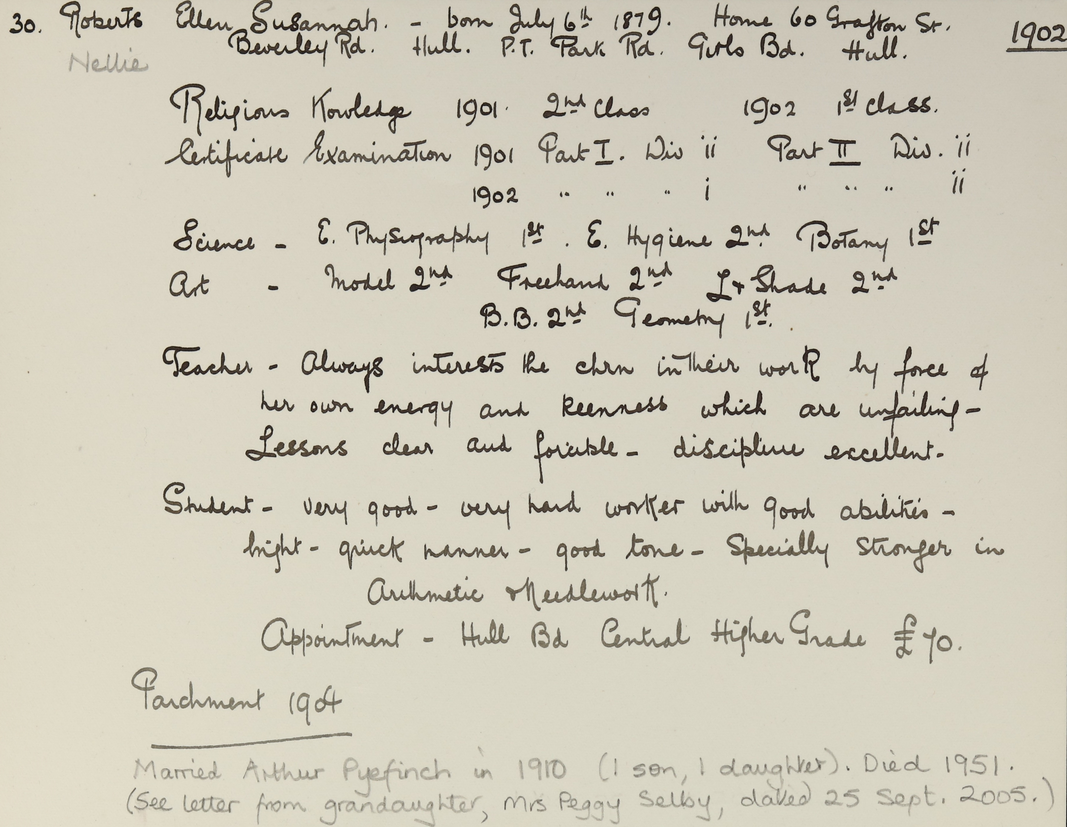 Appointed to Central High-Grade Girls', Hull Board. Assistant. £70.