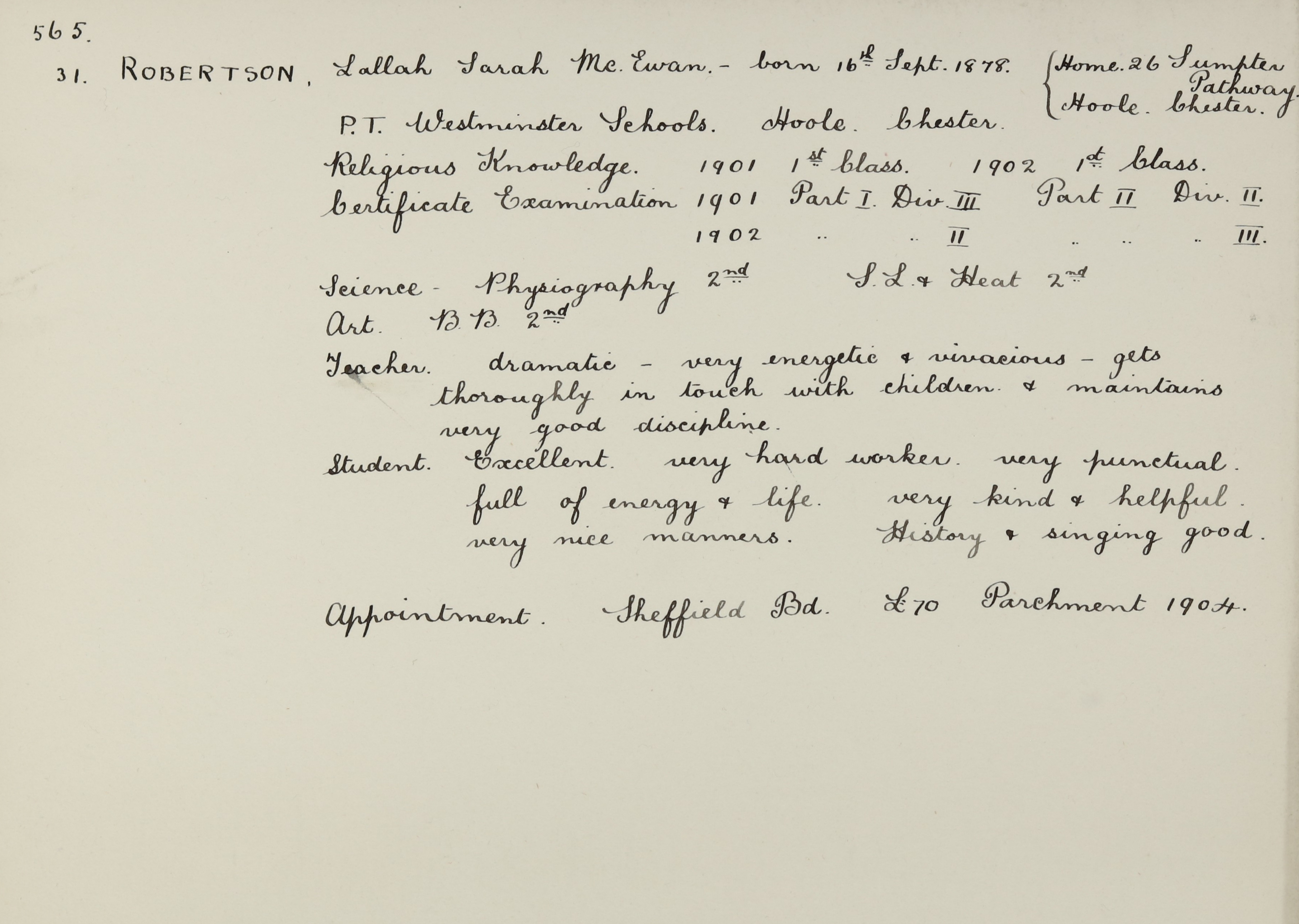 She is at 26 Sumpter Patway, Hoole, Chester. Her father is listed as ‘Forest Expert’. Her mother and siblings (Percy and Hermione) are unlisted. Lallah is listed as ‘Student Lincoln Training College’. Her brother, James, is listed as ‘Solicitors Clerk’.