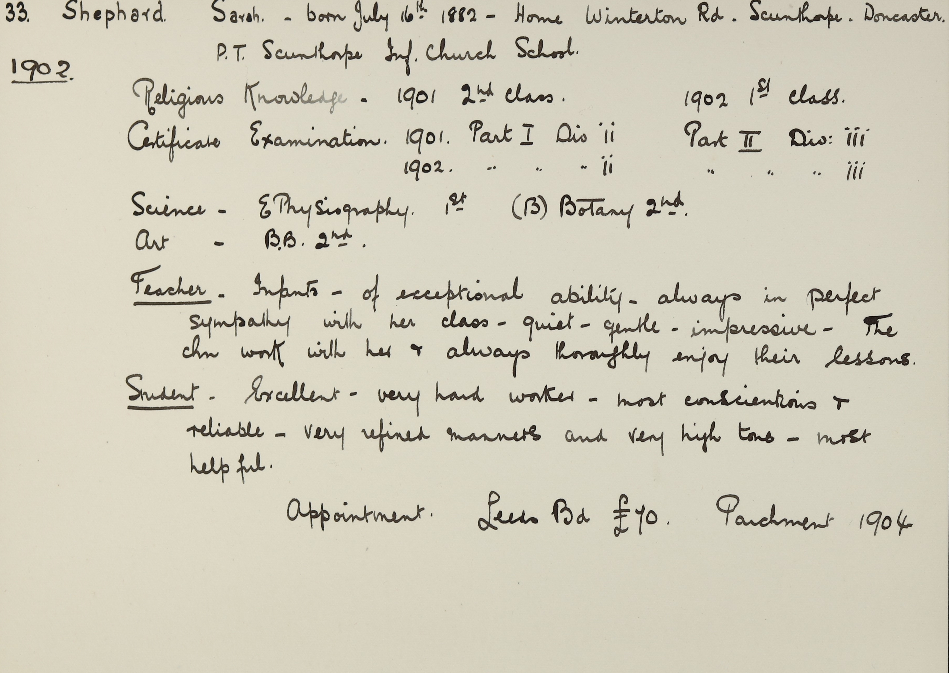 Appointed to Leeds Board. Assistant. £70.