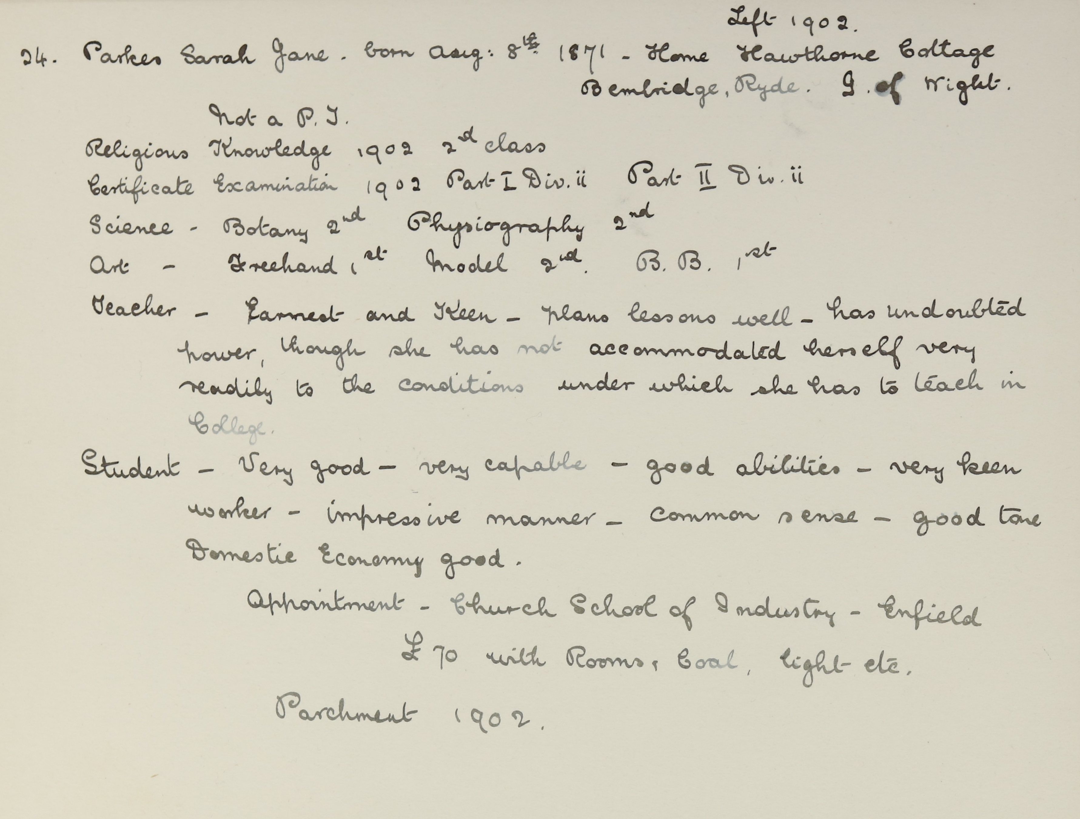 PARKES Sarah Jane of 39 Churchill Road, Cricklewood, Middlesex, spinster died 26 August 1914. Administration London 4 September to William Parkes, army pensioner. Effects £189, 16s, 8d.