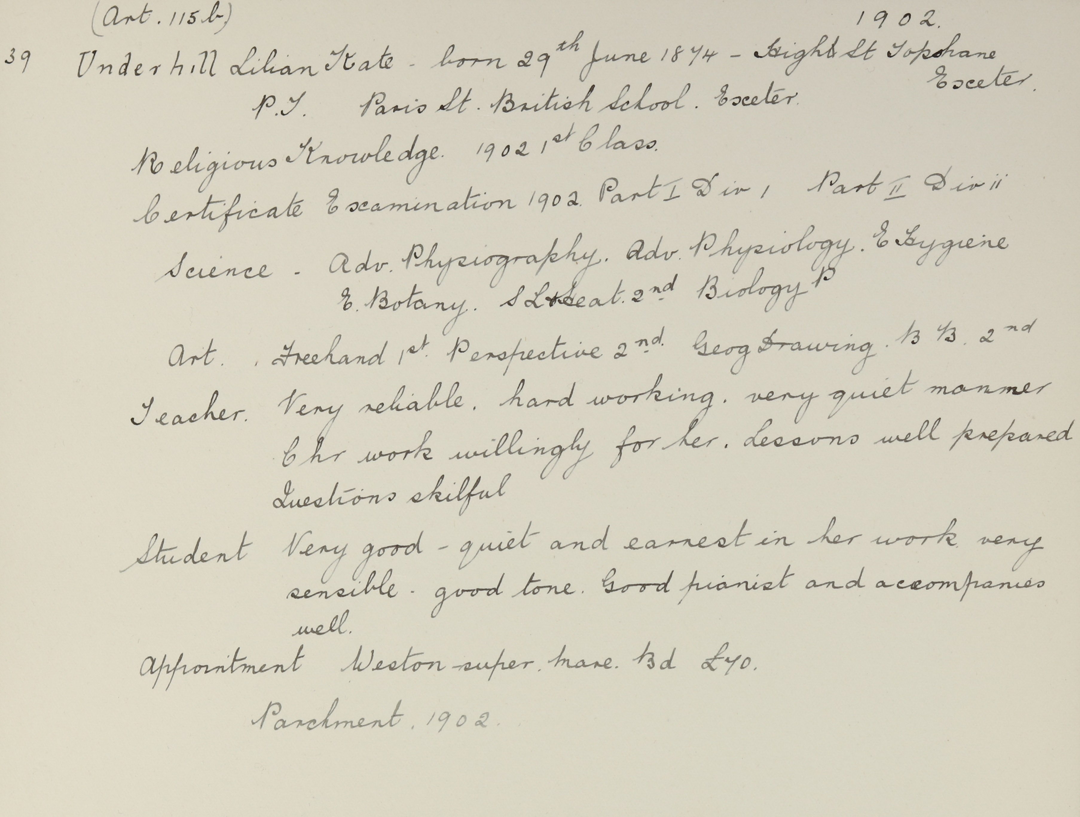 Baptised: 6 September 1874, Topsham, Devon