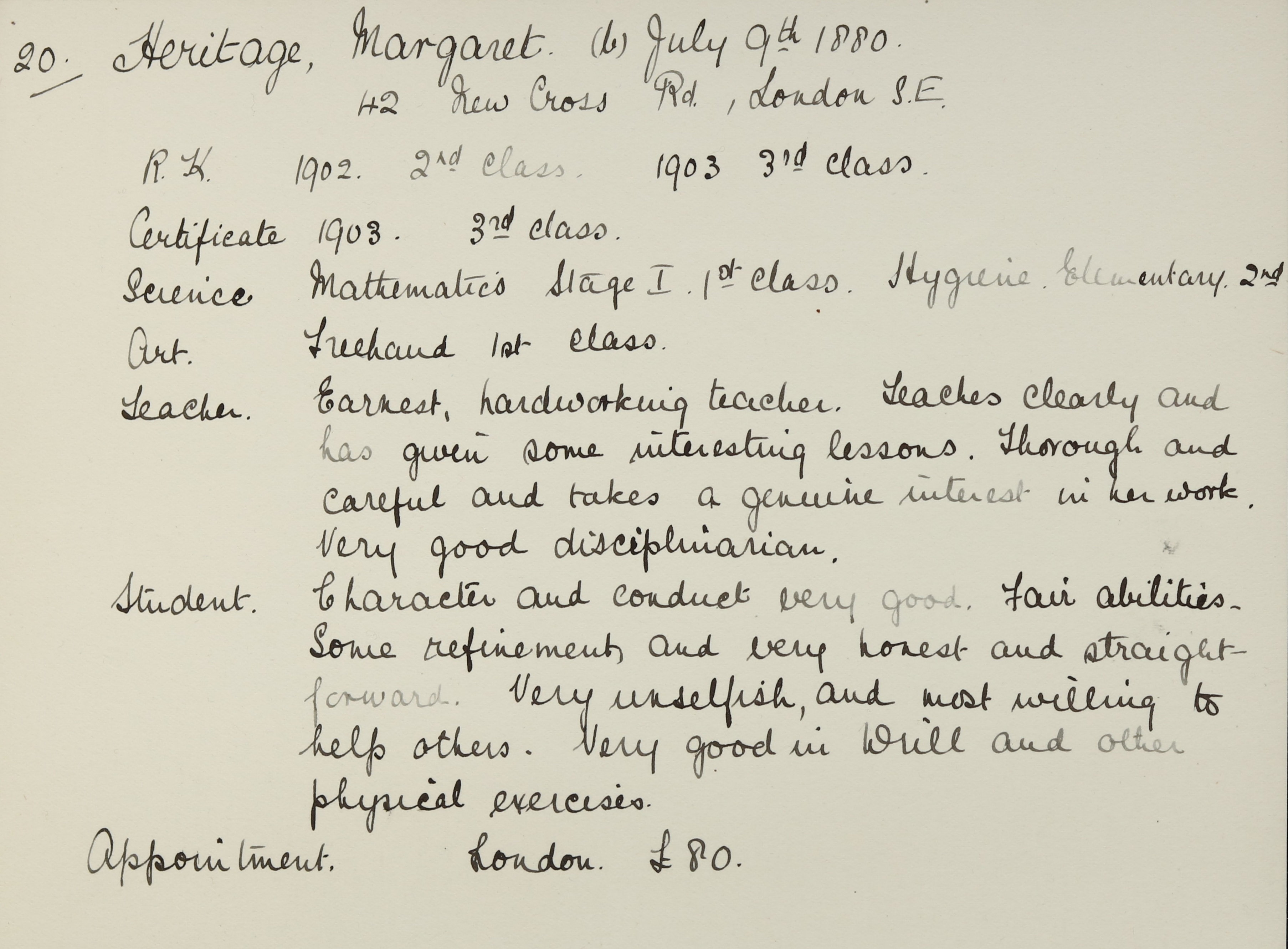Appointed to London Board. £80.