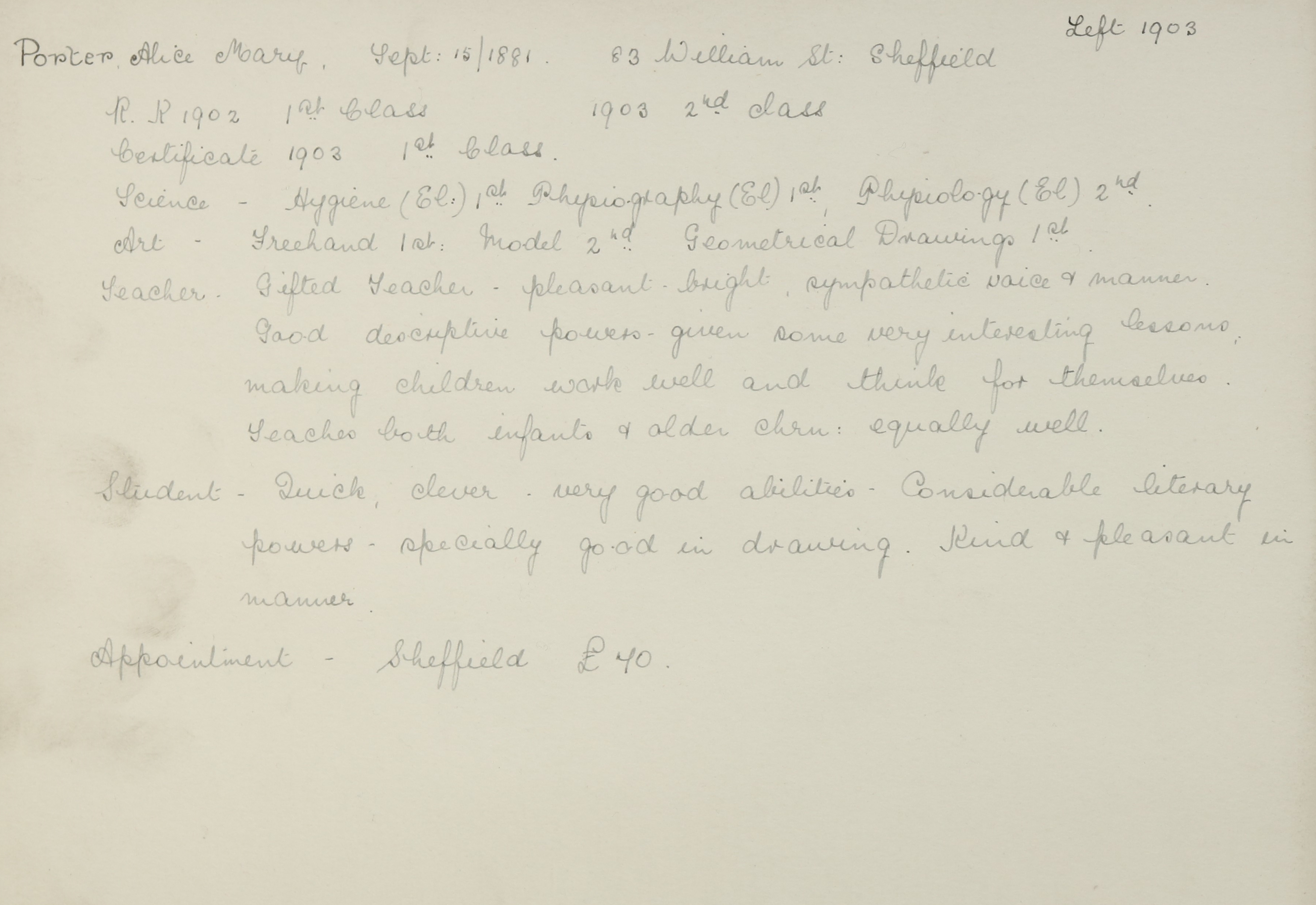 She is at Victoria Road, Totley Rise, Sheffield. Her husband is listed as ‘Incorporated Accountant and Auditor’. Alice is unlisted.