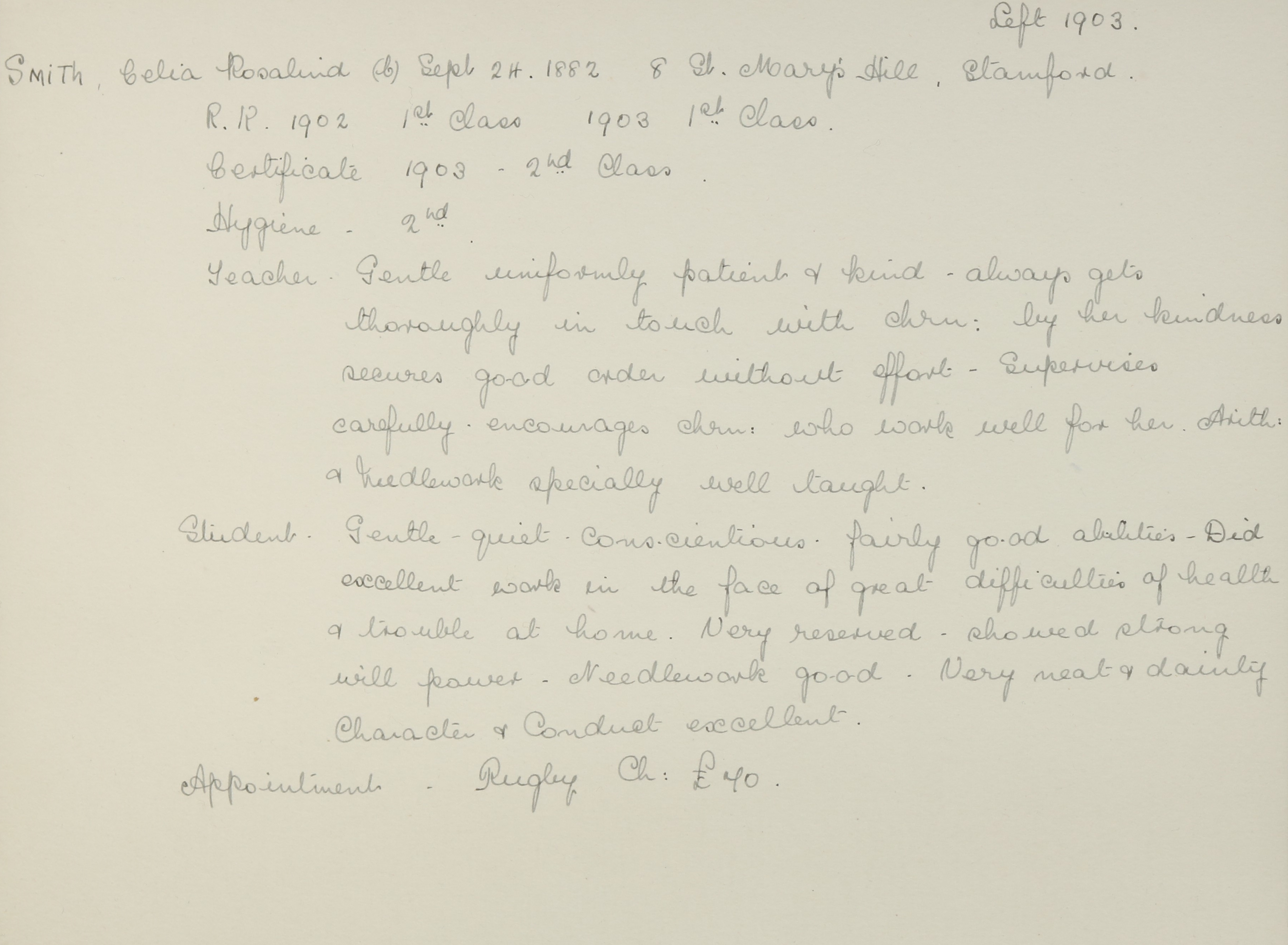 She is at High Street, St Martin, Stamford. Her father is listed as ‘Joiner’. Celia, her mother and siblings (Katherine, Leonard, Winifred, Jessica and Nerissa) are unlisted.