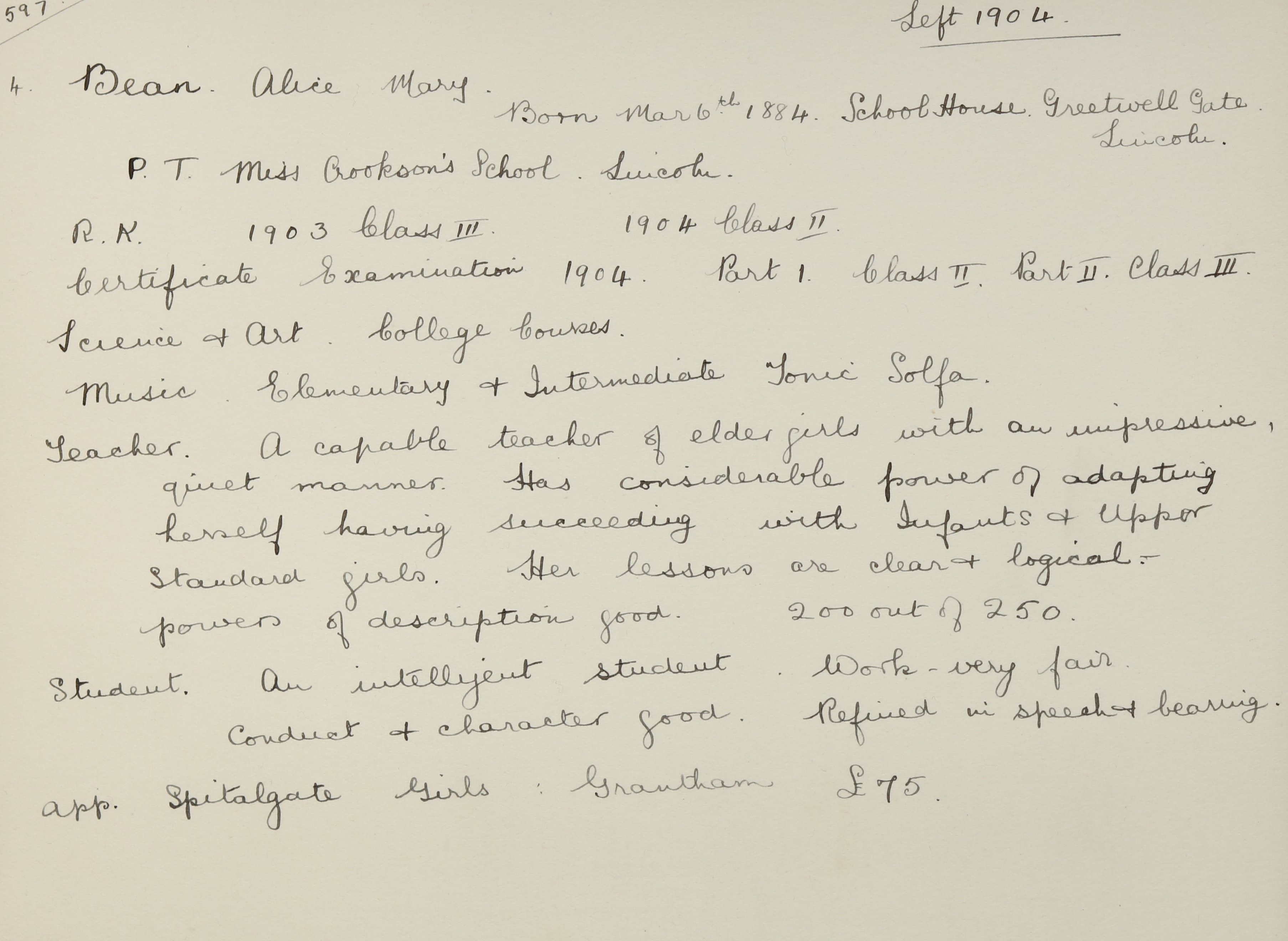 Appointed to Spitalgate Girls', Grantham. £75