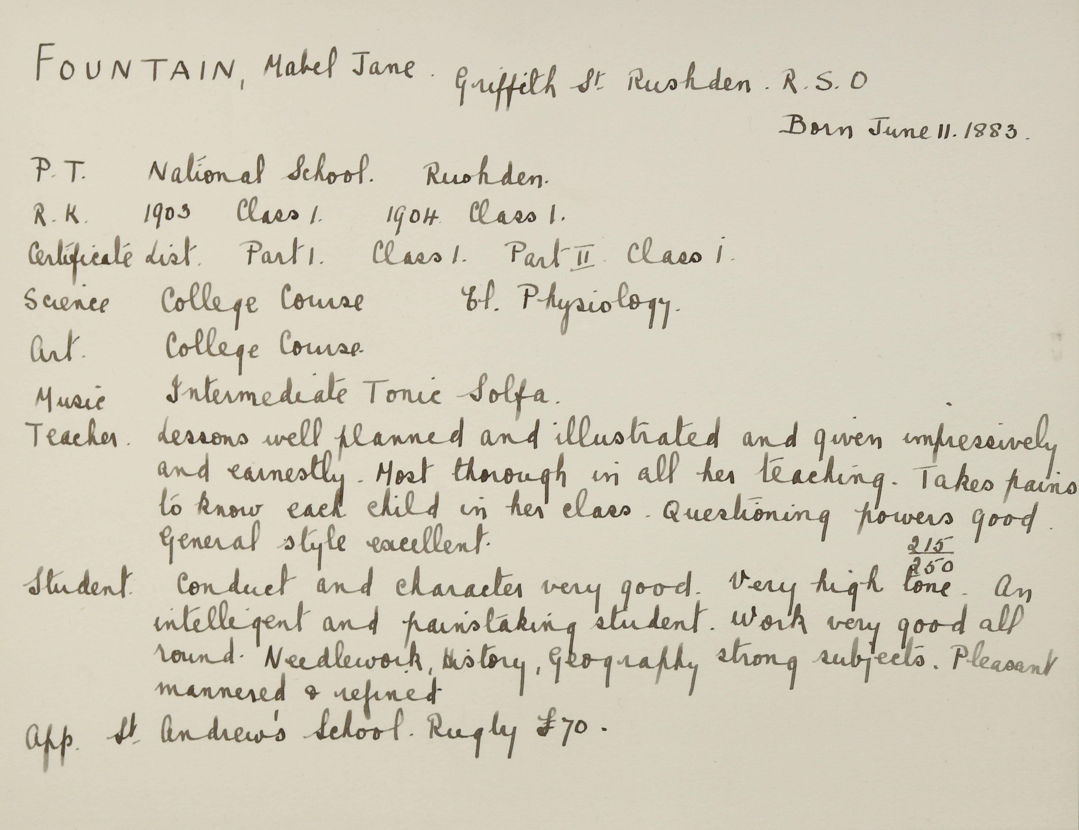 Appointed to St. Andrew's School, Rugby. £80.