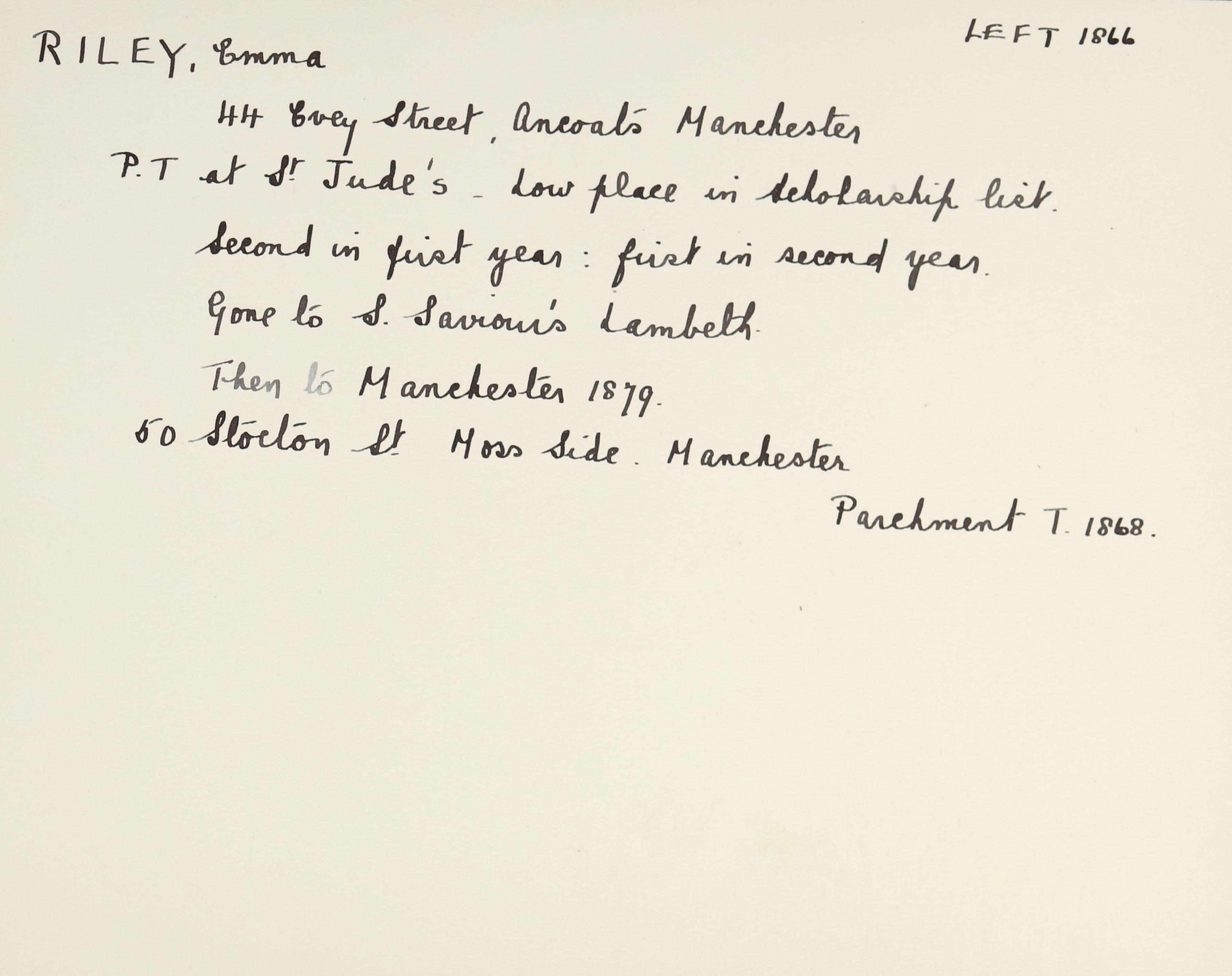 She is at 50 Stockton Street, Moss Side, Chorlton. Her mother is listed as ‘Housekeeper and Lodgings’. Her aunt, Ann Riley (b. 1835), is listed as ‘Housekeeper Lodgings’. Her sister, Annie, are listed as ‘Domestic Assistant and Household’. Emma is listed as ‘Schoolmistress’. There are two lodgers, William Wolfenden (b. 1858) and Edward Ashworth (b. 1849), both listed as ‘Bank Clerk’.