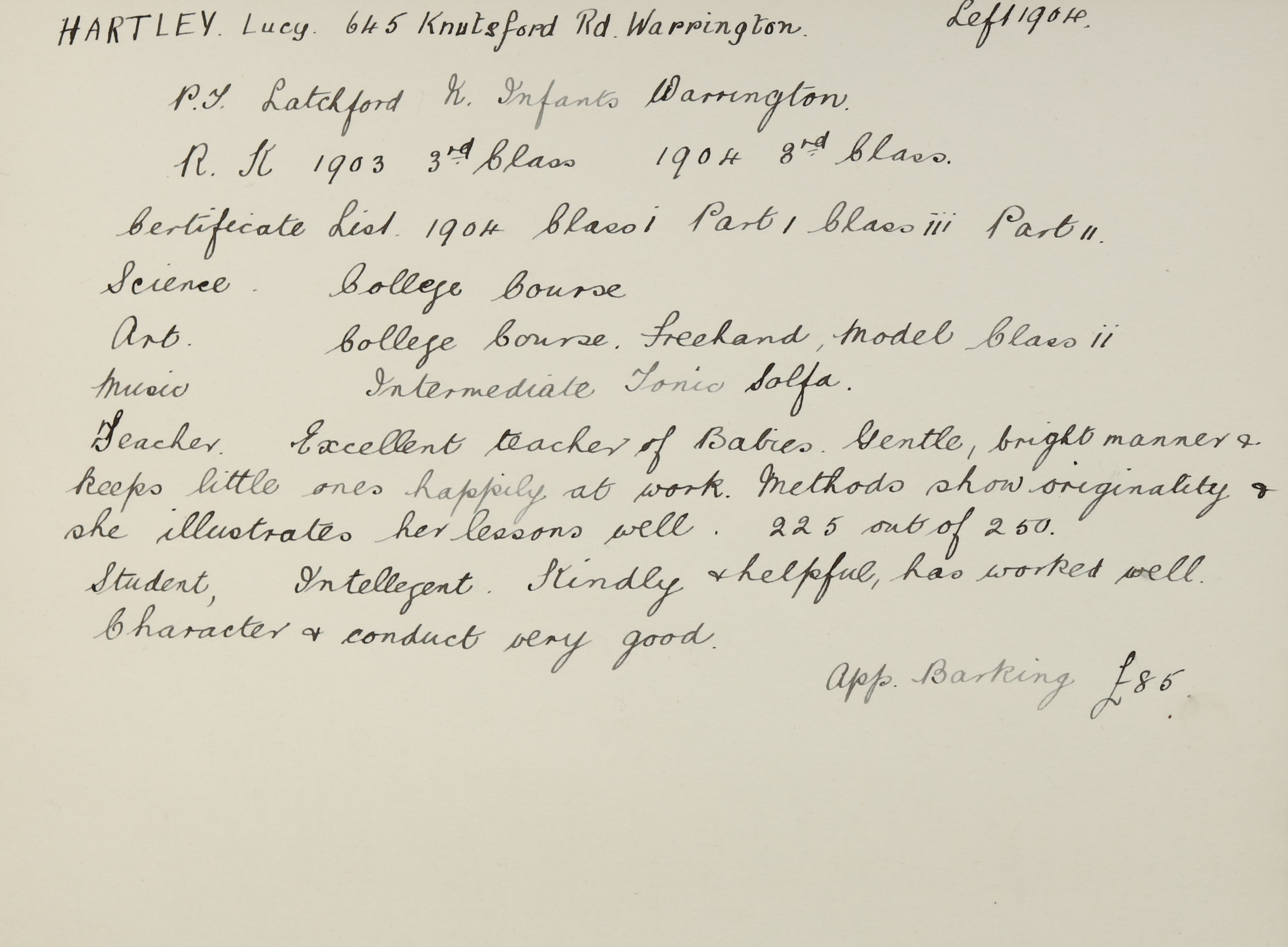 Appointed to Barking. £85.