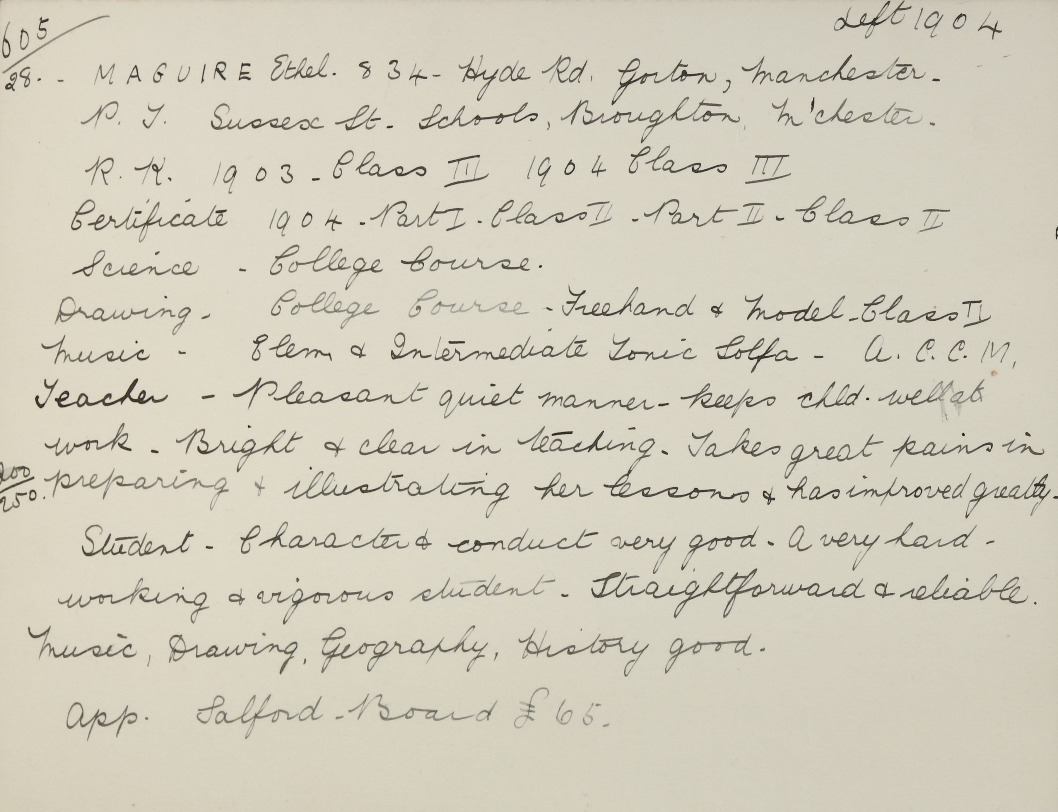 Appointed to Salford Board. £65.