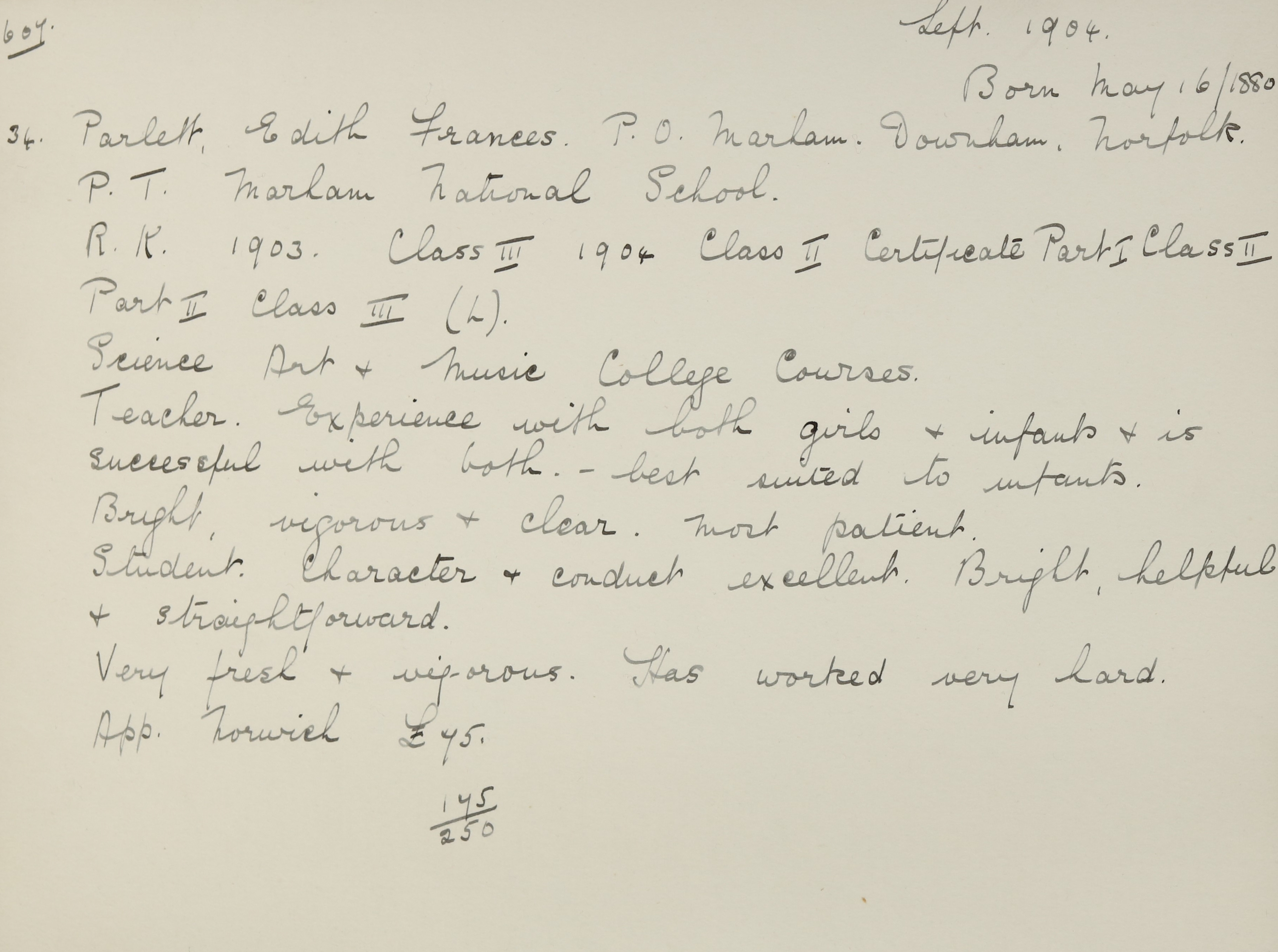 She is at Post Office, Marham. Her father is listed as ‘Postmaster Grocers Draper’. Edith is listed as ‘Teacher’. Her sister, Beatrice, is listed as ‘Telegraphist’. Her mother and siblings (Maud, Robert and Martin) are unlisted.