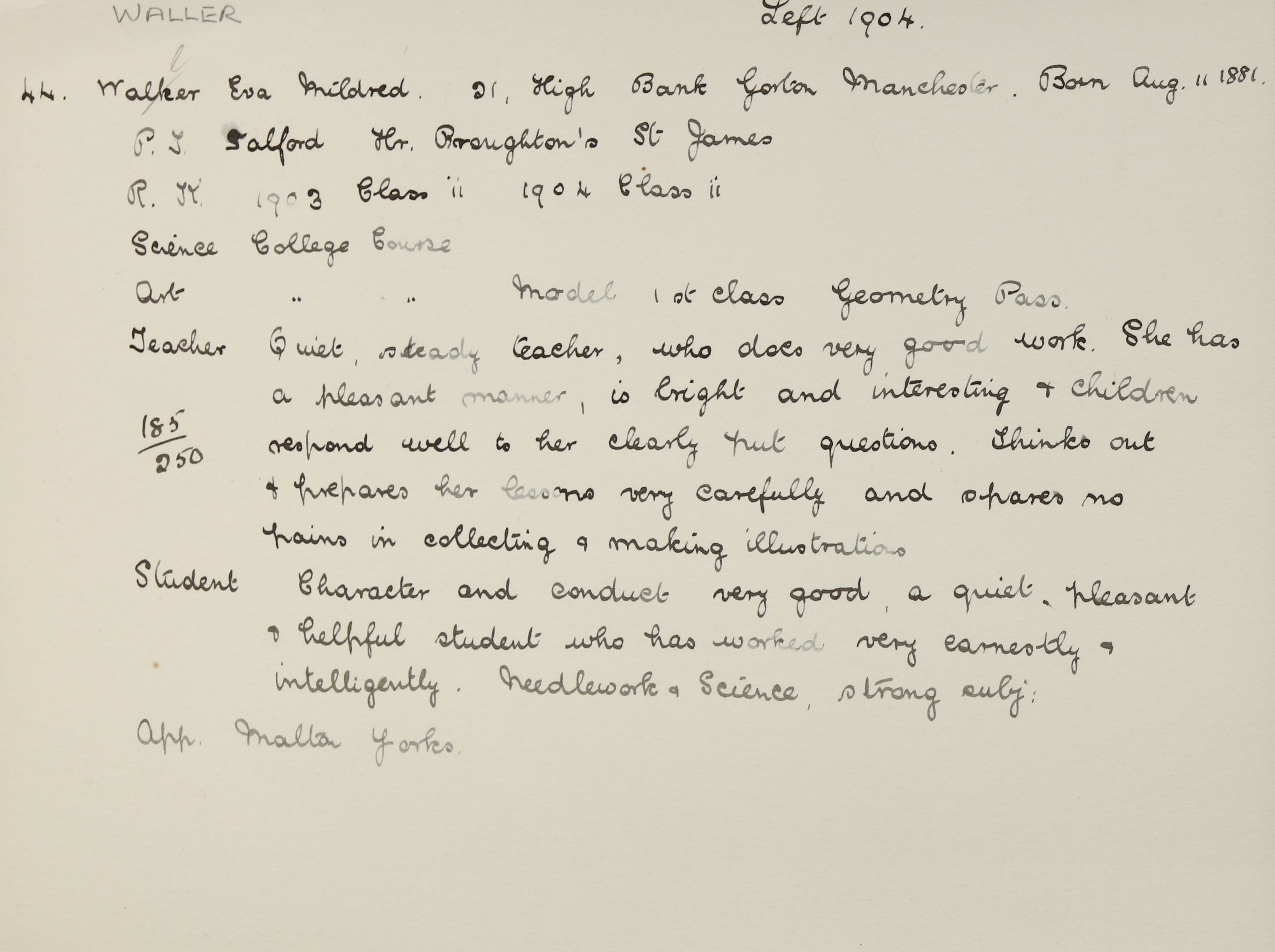 She is at 82 Laburnum Road, Denton, Lancashire. Eva and her brother, Herbert, are listed as ‘Assistant Teacher’. Her brother’s wife, Amelia Waller (b. 1880), is unlisted.