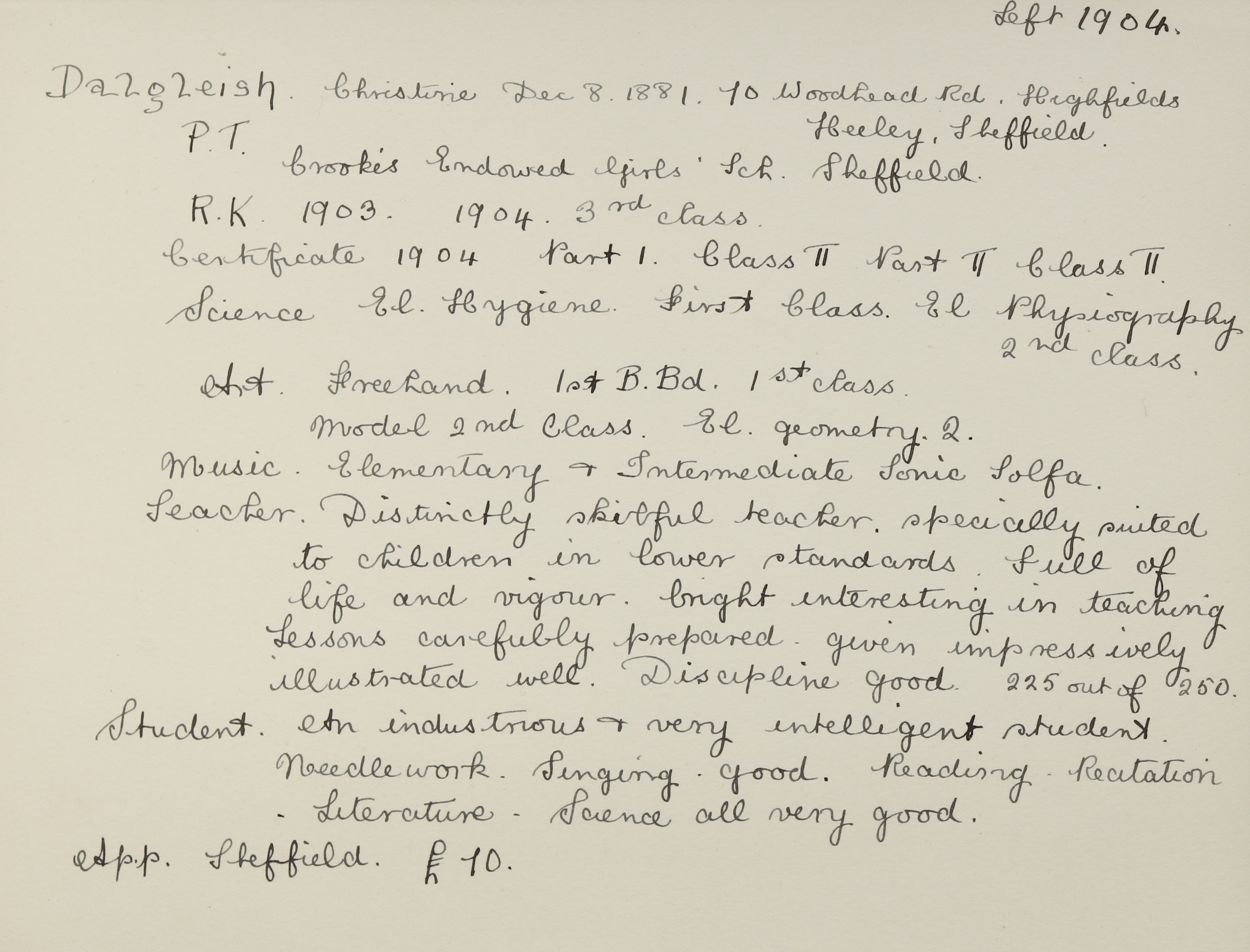 Born: 8 December 1881, Sheffield