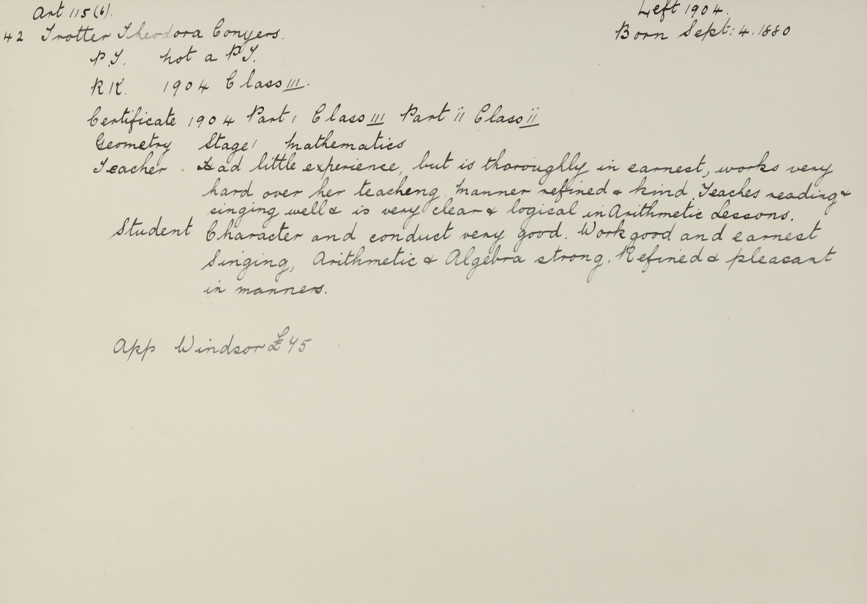 Appointed to Windsor. £70.