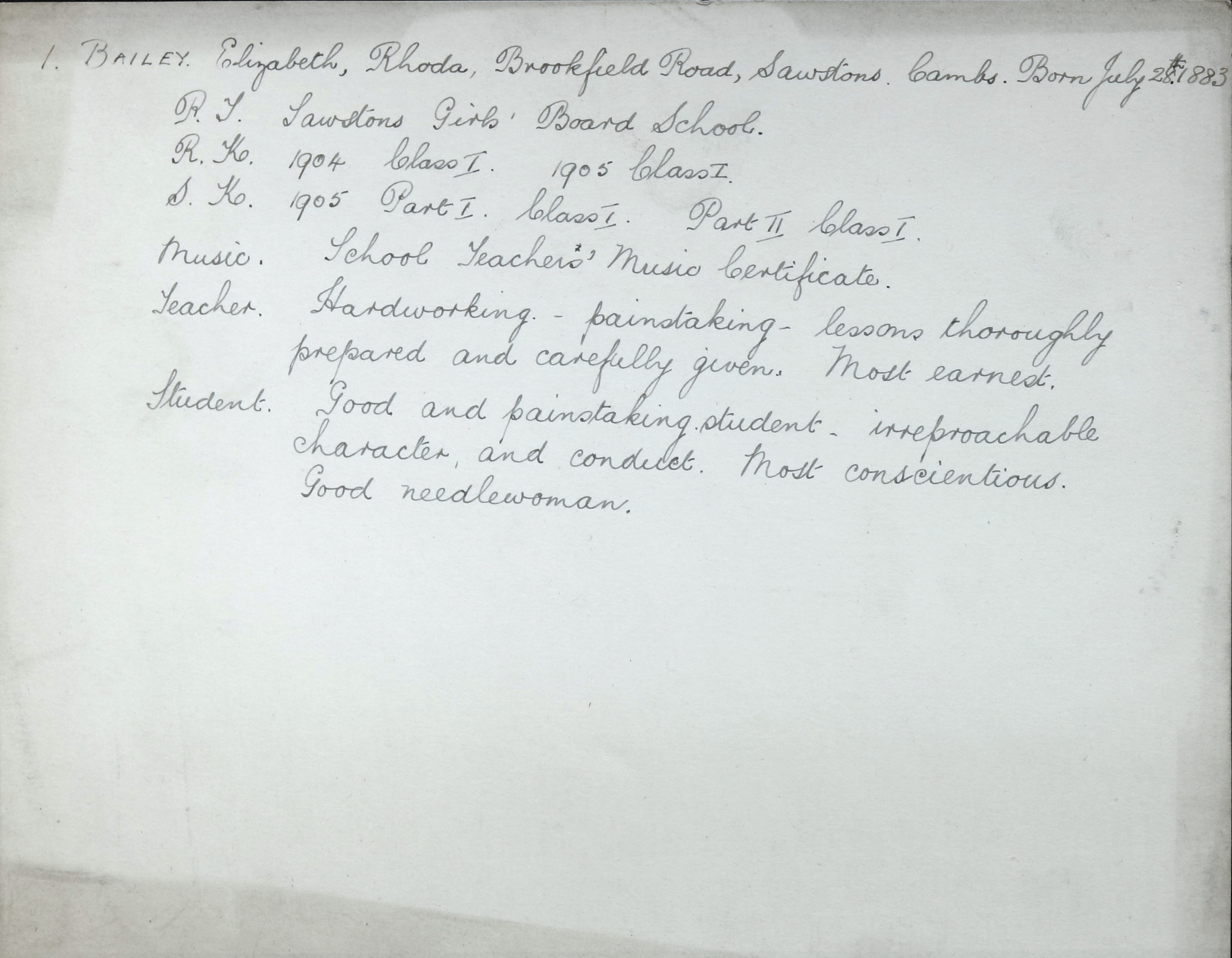 She is at Brookfield Road, Sawston. Her father is listed as ‘Friendly Society Secretary’. Her mother is unlisted. Elizabeth is listed as ‘School Mistress’.