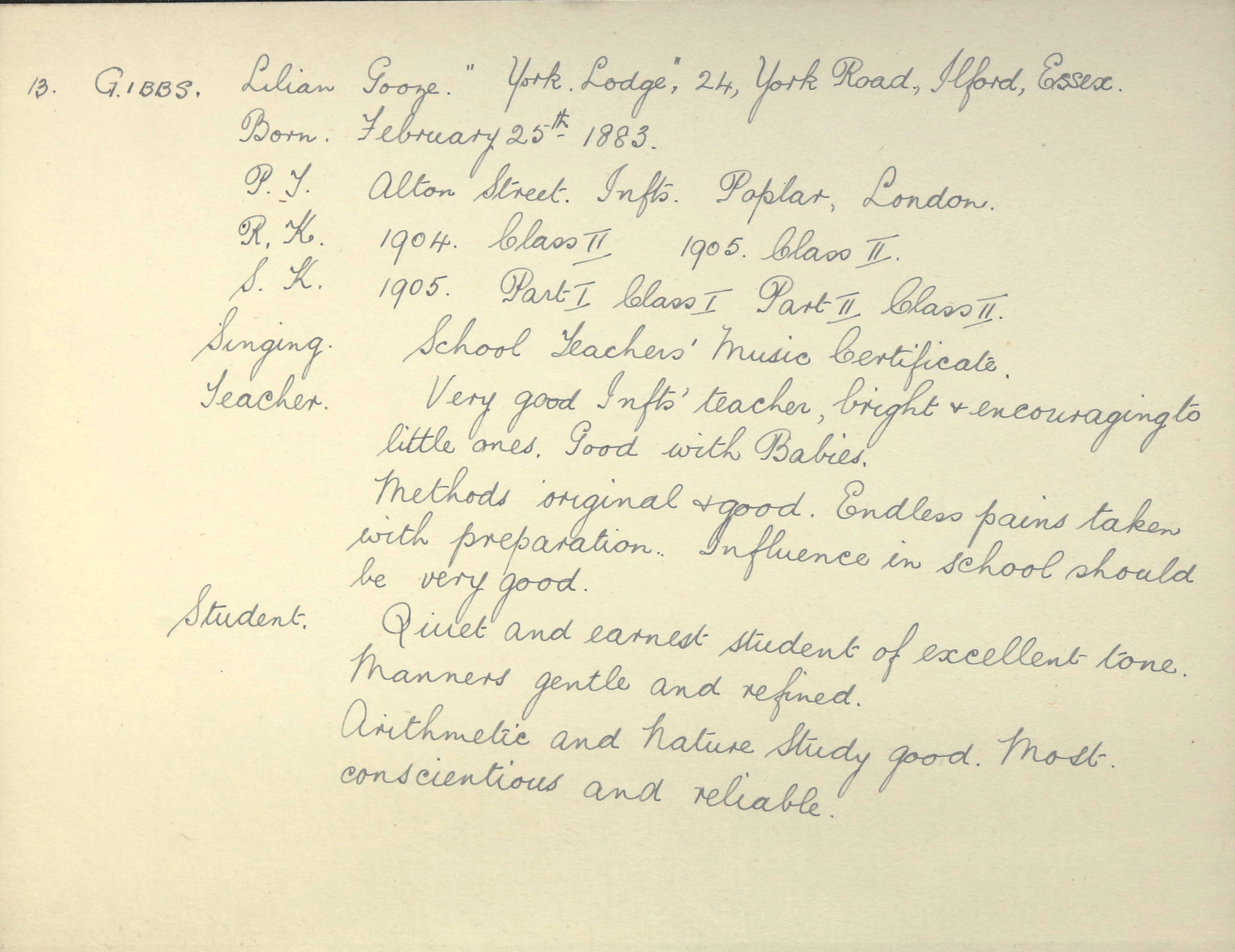 She is at 4 Belgrave Gardens, Ilford, Essex. Lilian and her siblings (Ethel and Frank) are listed as ‘Teacher Elementary School’. There is a servant, Margaret Mounsford (b. 1882).
