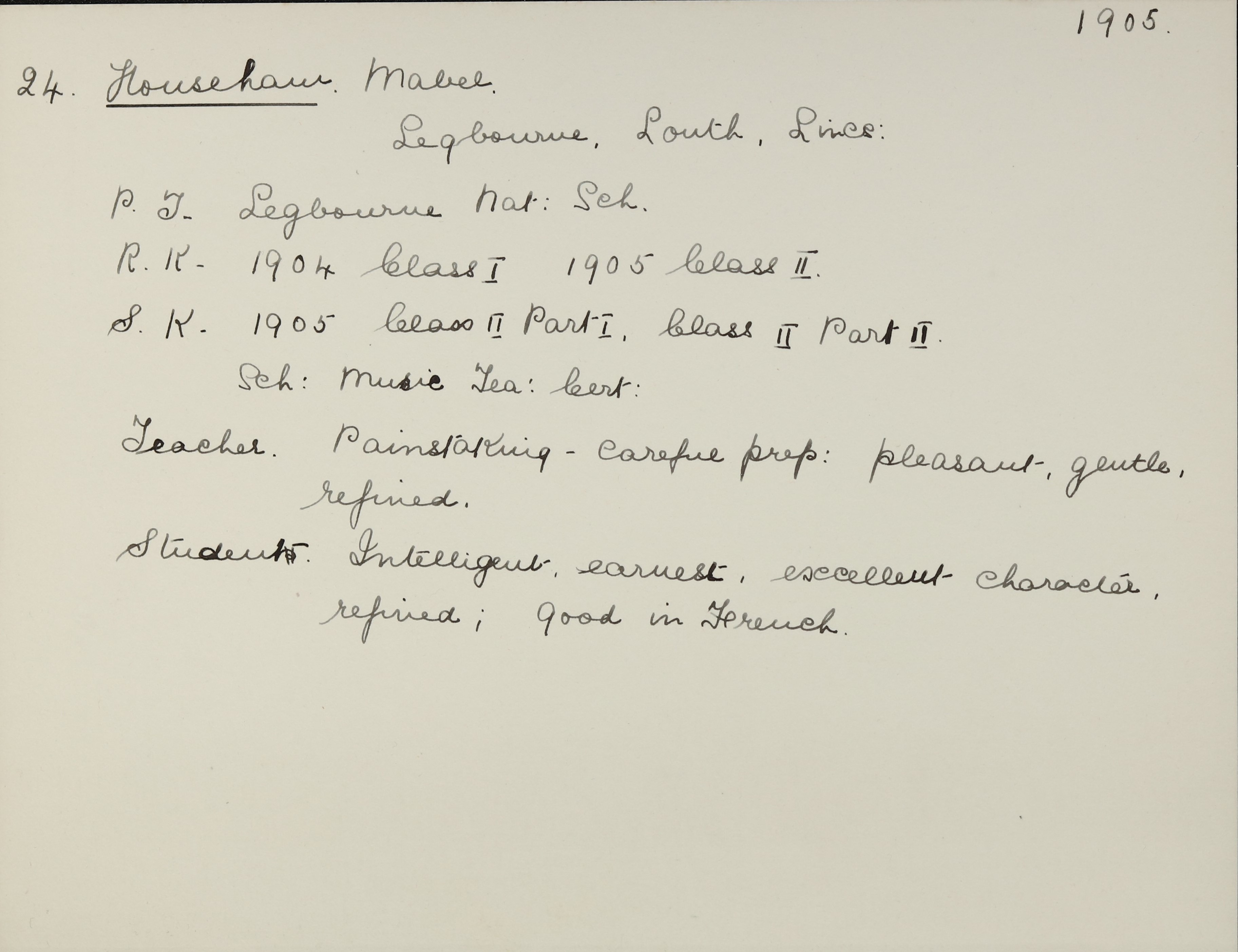 She is at Legbourne, Louth. Her father is listed as ‘Schoolmaster’. Mabel and her mother are unlisted.