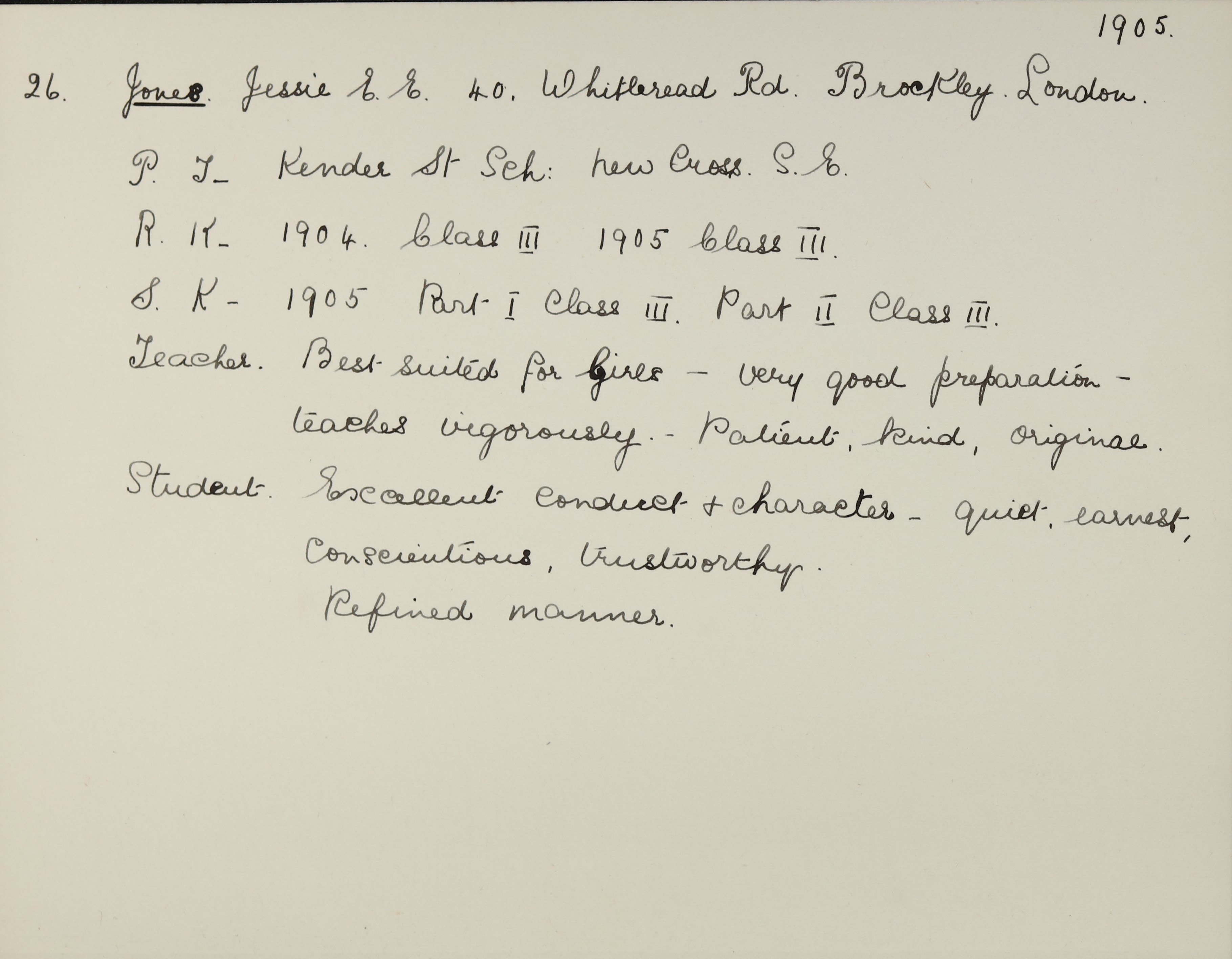 Address is 40 Whitbread Road, Brockley, London, S.E.